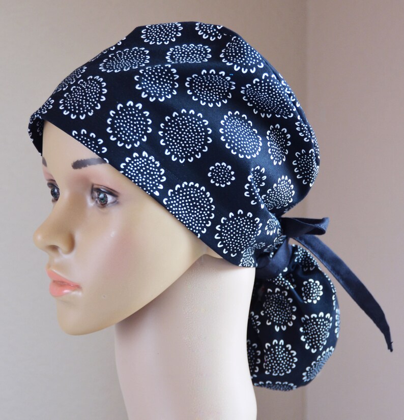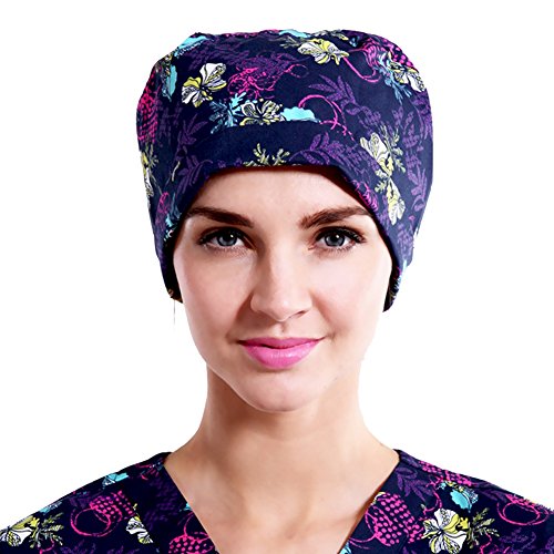 Custom scrub hats made from 100% cotton designer fabrics!! Premium scrub caps by green scrubs. The designs are adorable, my hair is all wrapped in the fabric bun tied in back with a ribbon, and the wash up wonderfully! All of our styles adapt to individual hairstyle and volume.